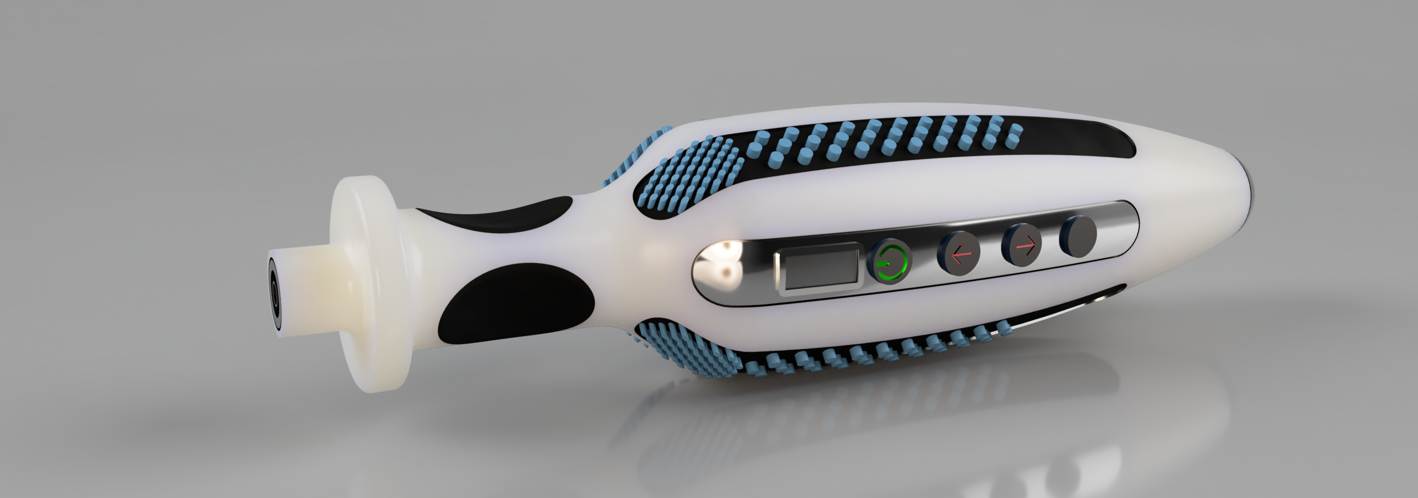 This project showcases a collaborative team effort. At the time of this project, I was enrolled in a class titled "Introduction to Biomedical Engineering Design". I worked alongside 5 other students to identify a need for a cuff pressure regulatory device. Together, we created a device to regulate a tailored air pressure in the ETT cuff for patients undergoing prolonged surgical procedures. I was responsible for the majority of the visual and functional design. Seen below are some renderings of our final prototype.