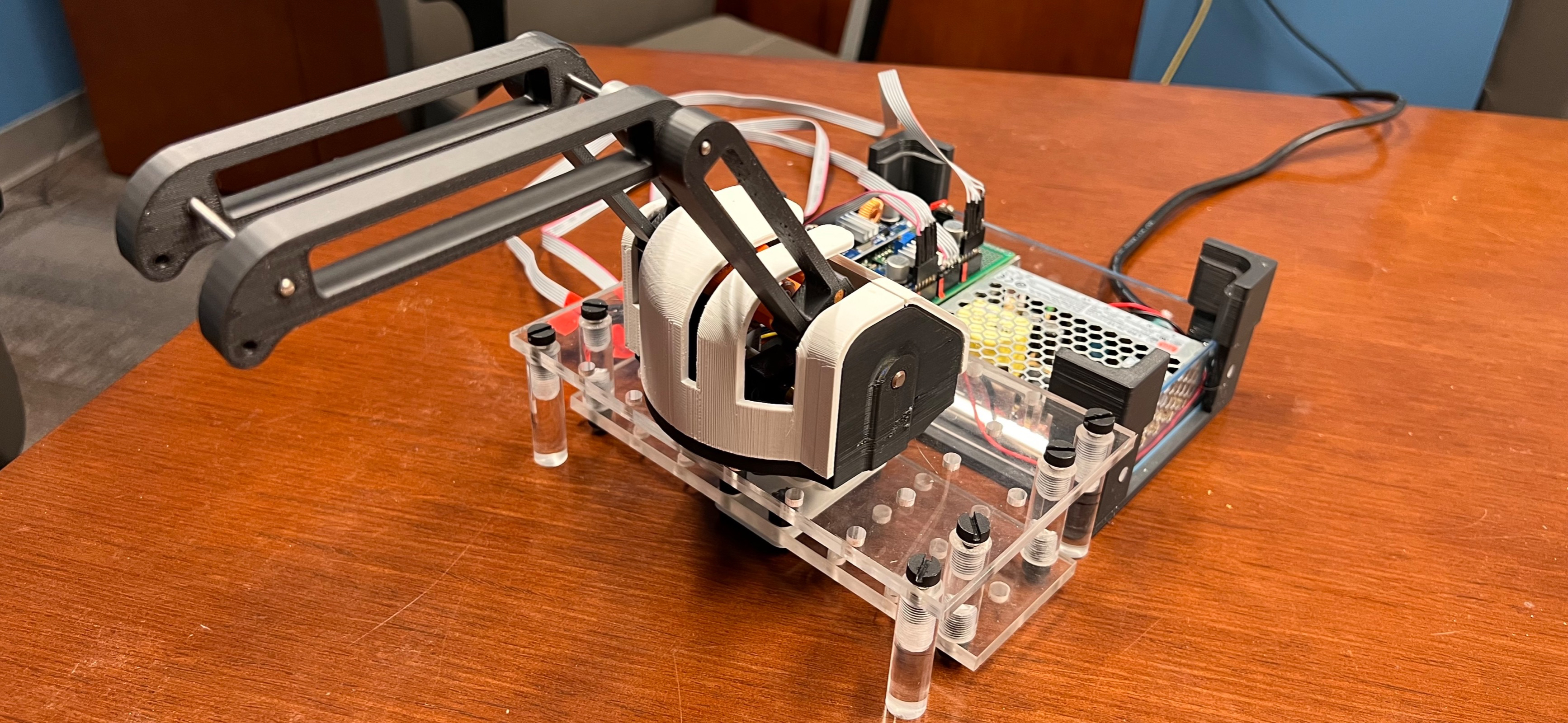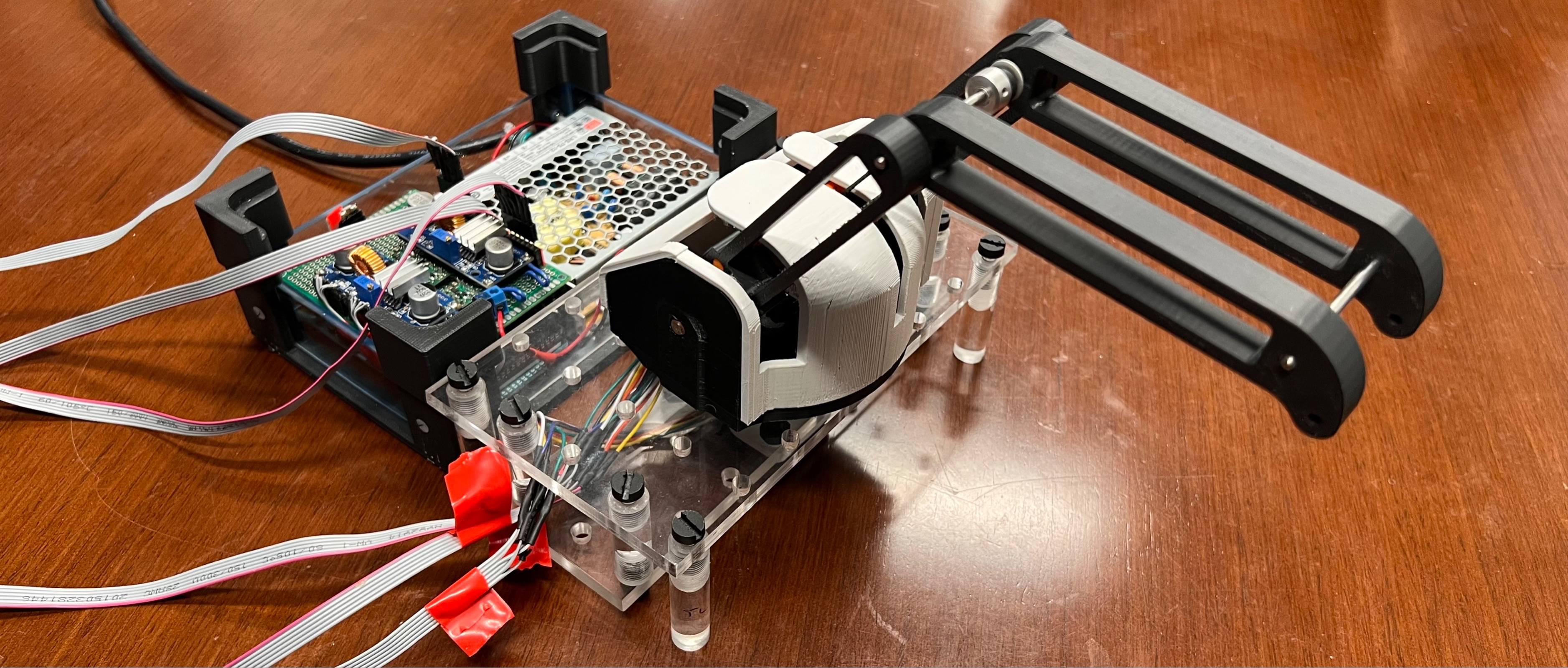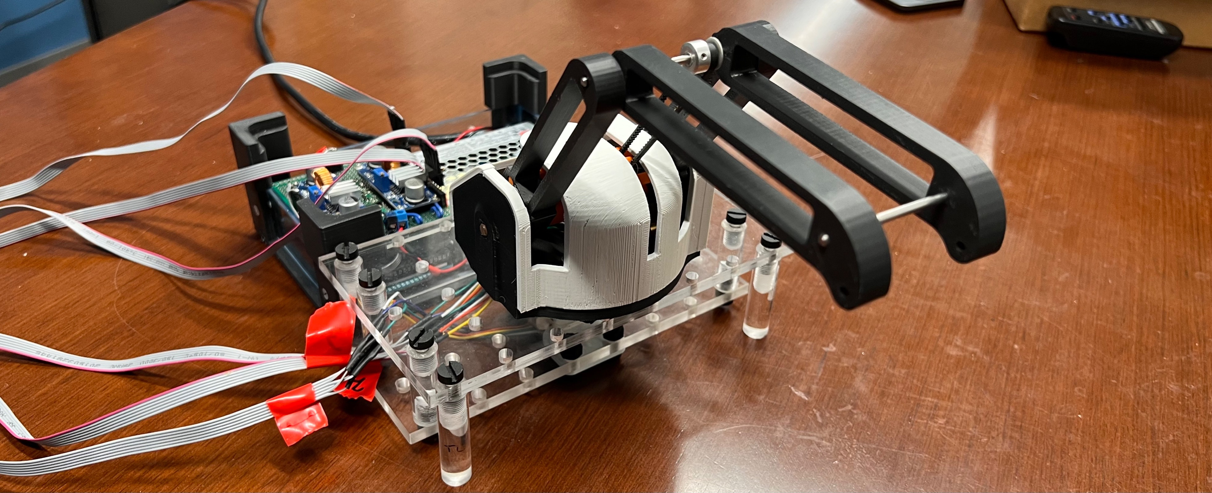 This was the first project I completed for my medical robotics lab. This 3 degree of freedom robotic manipulator was the product of several months of learning, designing, manufacturing, and programming. This project taught me valuable lessons about iterative design, robotic systems, and manufacturing-oriented design. Most of the mechanical design was done on SolidWorks. The electronics of this project forced me to familiarize myself with arduino programming, PID motor control, and PCB design. Overall, this was an incredible learning experience.